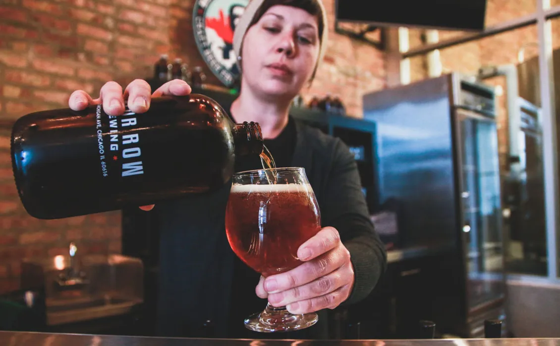 Barchefen Tracie häller upp öl på Chicagos Motor Row Brewing. (Kredit: Motor Row Brewing)Beläget strax söder om Chicagos majestätiska skyline inuti en historisk byggnad förkroppsligar Motor Row Brewing föreställningen om gemenskap och historia en hörnsten i hantverksbryggningsindustrin. Bryggeriet restaurerade en landmärkebyggnad och hjälpte sedan till att föryngra ett historiskt distrikt.